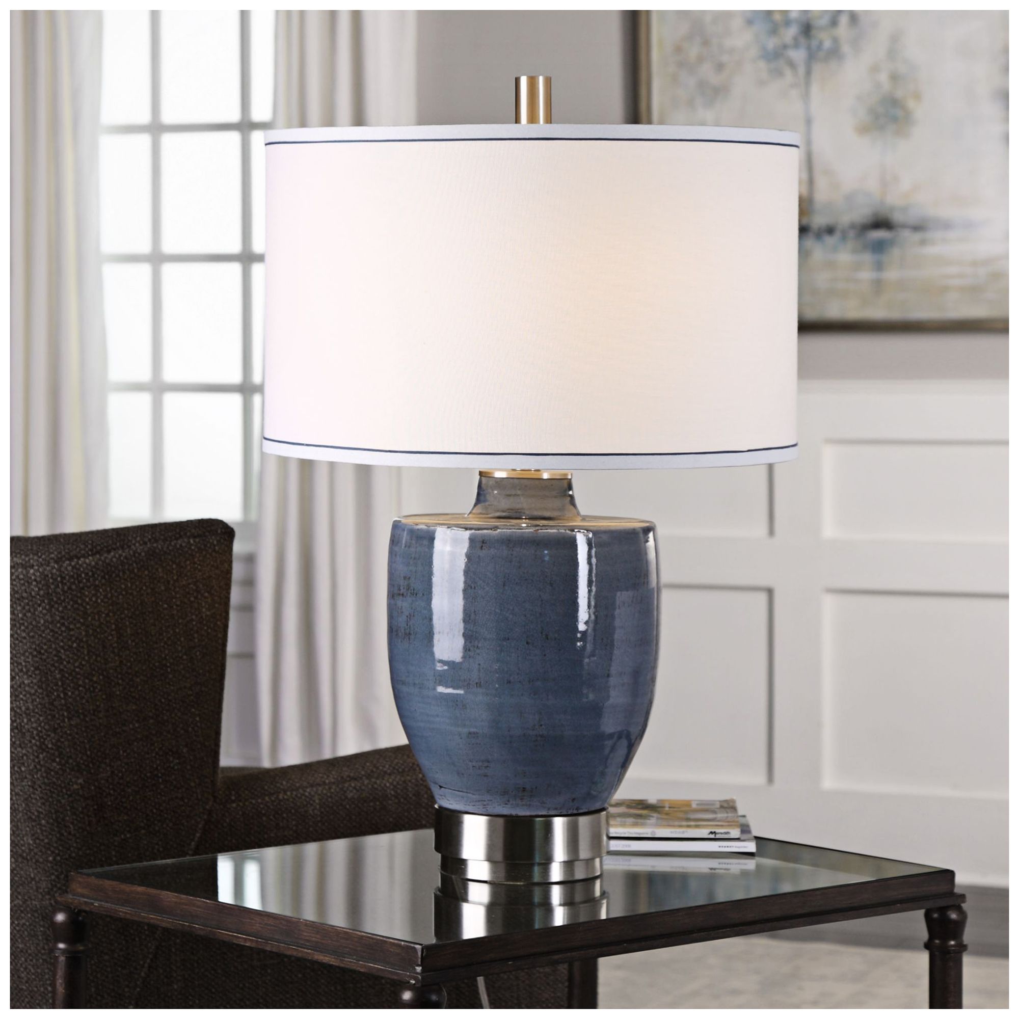 Uttermost prussian deep blue ceramic table lamp. With a bold pop of color, this will add a modern style to your home. Vintage lamp // baby blue glass and ceramic table lamp // pottery lamp // globe light yugovicheva 5 out of 5 stars (754) $ 84.13. Hundreds of lamps brands ship free. Ships free orders over $39.