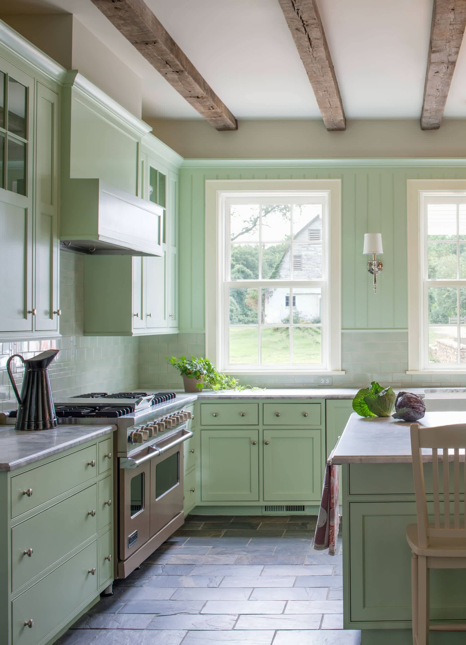 Sweeten, a general contractor matchmaker, told the outlet that they've seen an increase in people getting their kitchen cabinets painted in a pale green color in the mint family. This post will give you 26 green kitchen cabinet ideas carefully selected to match different kitchen design schemes. This transitional kitchen is heavy on the traditional elements, but it also has a contemporary flair due to the shade of soft mint covering the walls. From the palest hint of mint to bold turquoise, these shades have a breezy energising quality that brings to mind ocean waves. Studio35 york shades of green evoke growth, renewal, and life—and what's the best message to send in the heart of your home? Mint green cabinets, blonde woods, and ella create springtime vibes in the happy tudor kitchen. The colors to pair with mint: Our mint green shopping pick. Forgo upper cabinets, to create a minimal look. Colonial kitchen by david d. The green tint echoes the stained glass in the back door. Trends in kitchen cabinet colors come and go. See more ideas about mint green kitchen, green kitchen, kitchen inspirations.